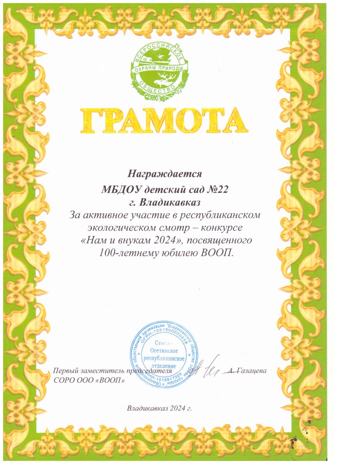 Грамота Есиевой С.