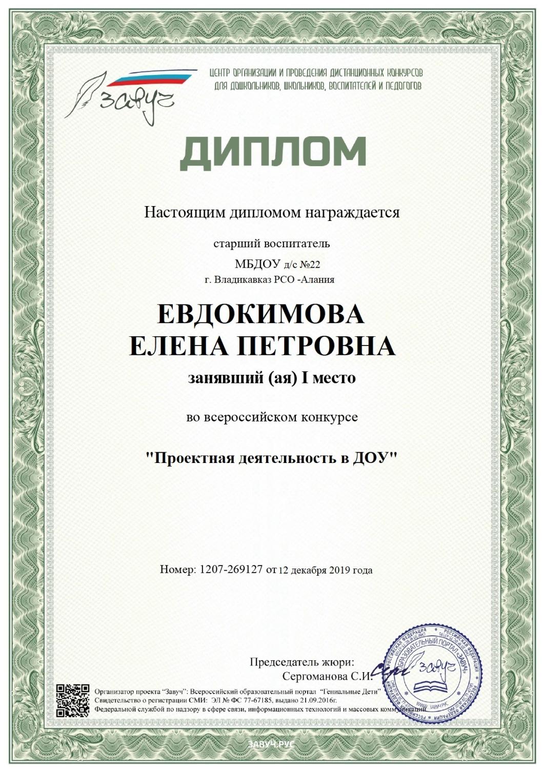 Диплом Евдокимой Е.П.