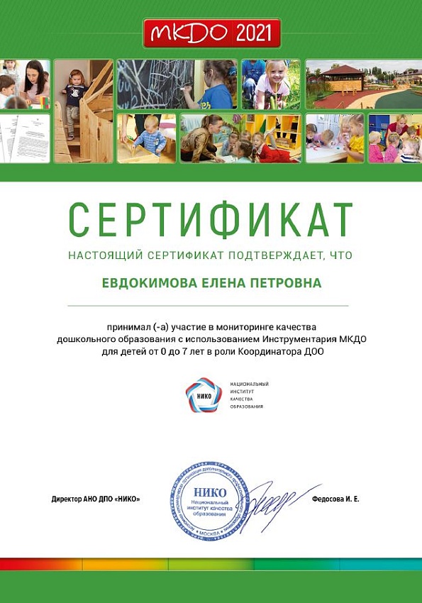Сертификат Евдокимовой Е.П.